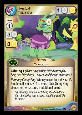 Harmony Changeling: When you confront this card's Problem, if you have 2 or more other Changeling characters here, score an additional point.